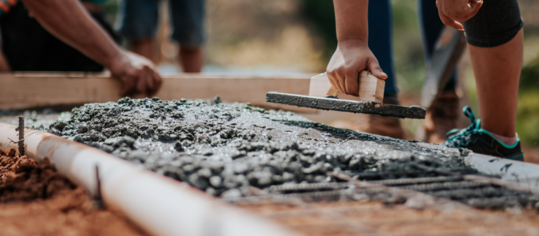 A concrete base is actually constructed of four elements: a hardcore base that will need to be leveled out and compacted, a damp-proof course to prevent damp, timber supports to create a mould for the concrete to set in, and finally the concrete itself that is poured across the area.
