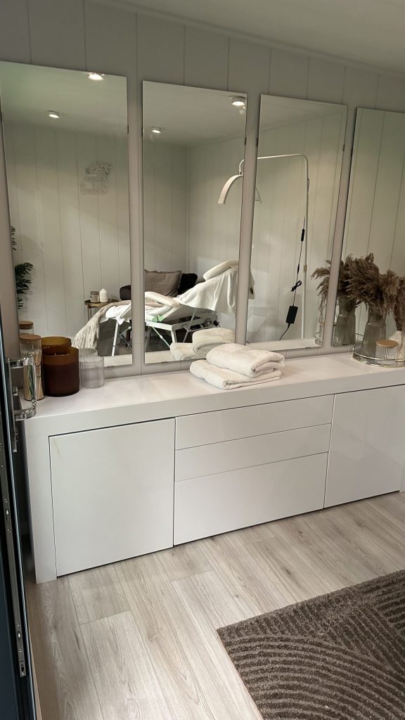 • Walls installed with Waterproof wall membrane, insulated with insulation roll and fully boarded with a choice of smooth MDF or 9mm bead and butt;