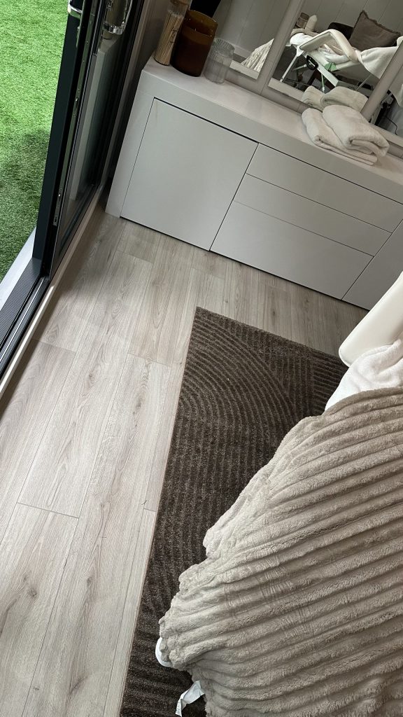 - Walls installed with Waterproof wall membrane, insulated with insulation roll and fully boarded with a choice of smooth MDF or 9mm bead and butt;