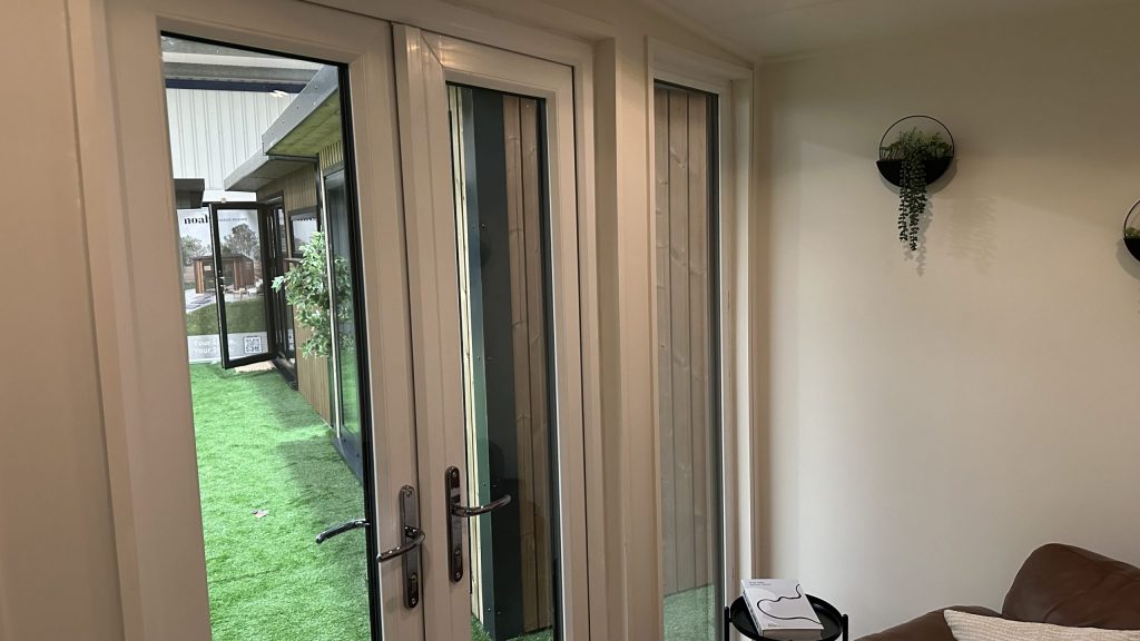 A striking reverse-apex roof, full premium-foil insulation to walls, roof and floor, wide PVC double doors and up to four matching windows flood the interior with light, all protected by an EPDM rubber roof. Delivered and professionally fitted free within 100 miles of our show site, it’s a ready-to-enjoy space for work, fitness or laid-back entertaining.